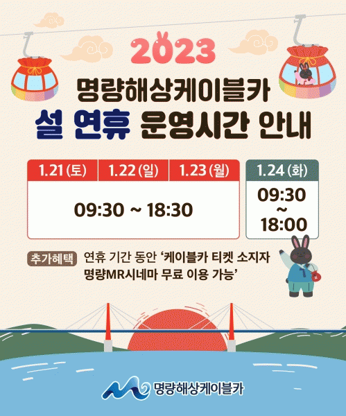 [¹Ìµð¾îÀü³² Á¦°¥´ëÁ¾ ±âÀÚ] 2023³â °è¹¦³â ¼³¿¬ÈÞ¸¦ ¸Â¾Æ ¸í·®ÇØ»óÄÉÀ̺íÄ«°¡ ±Í¼º°´µéÀÌ °¡Á·µé°ú ÇÔ²² Áñ°Å¿î ½Ã°£À» Áñ±â½Ç ¼ö ÀÖ°Ô ¼³³¯ ¿¬ÈÞ ±â°£µ¿¾È Á¤»ó¿î¿µÀ» ÇÑ´Ù°í ¹àÇû´Ù. ¼³³¯ ¿¬ÈޱⰣµ¿¾È ÄÉÀ̺íÄ«´Â ¿ÀÀü 9½Ã 30ºÐºÎÅÍ¡¦