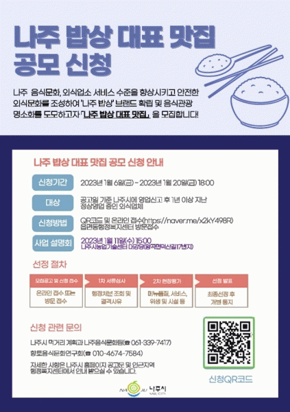 [¹Ìµð¾îÀü³² ¹Úº¹»ê ±âÀÚ] Àü¶ó³²µµ ³ªÁֽô ¹Î¼± 8±â °ø¾àÀÎ ¡®³ªÁÖ¹ä»ó ºê·£µåÈ¡¯ »ç¾÷¿¡ Âü¿©ÇÒ ´ëÇ¥ ¸ÀÁý ¾÷¼Ò¸¦ ¿À´Â 20ÀϱîÁö °ø°³ ¸ðÁýÇÑ´Ù°í 12ÀÏ ¹àÇû´Ù. ÀÌ »ç¾÷Àº ´ë´ë·Î Áö¿ª¿¡ À̾îÁ®¿Â ÇâÅä À½½Ä ÀÚ¿øÀÇ Ã¼°èÀûÀÎ º¸Á¸¡¦