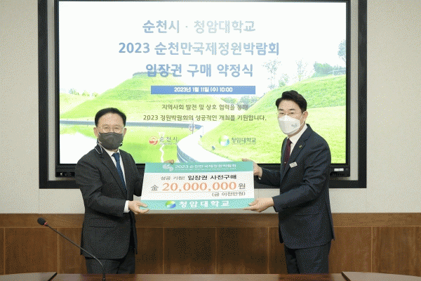 [¹Ìµð¾îÀü³² ÀÓ¼º¿Ï ±âÀÚ] ¼øÃµ½Ã¿Í û¾Ï´ëÇб³°¡ 11ÀÏ ¡®2023¼øÃµ¸¸±¹Á¦Á¤¿ø¹Ú¶÷ȸ¡¯ÀÇ ¼º°ø °³ÃÖ¸¦ À§ÇØ °øµ¿ Çù·ÂÇϱâ·Î Çß´Ù. À̳¯ ³ë°ü±Ô ¼øÃµ½ÃÀåÀÌ Ã»¾Ï´ë¸¦ ¹æ¹®ÇØ ±è¼ºÈ« û¾Ï´ëÇб³ ÃÑÀå Á÷¹«´ëÇàÀ» ¸¸³ª ÀÔÀå±Ç ±¸¸Å ¾àÁ¤À» ¡¦