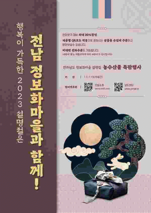 [¹Ìµð¾îÀü³² Á¦°¥´ëÁ¾ ±âÀÚ] Àü¶ó³²µµ´Â ¿À´Â 15ÀϱîÁö ¼³À» ¸Â¾Æ ³ó¼ö»ê¹° ¼Òºñ ÃËÁøÀ» À§ÇÑ ¡®2023³â ¼³¸ÂÀÌ Á¤º¸È¸¶À» Ư»êǰ ƯÆÇÇà»ç¡¯¸¦ ÁøÇàÇÑ´Ù. ƯÆÇÇà»ç¿¡¼± Àü³²Áö¿ª »ç°ú, ¹è, ±¼ºñ, ¹ö¼¸, ³ª¹° µî Á¦¼ö¿ëǰ°ú °Ç¾î¹°, °úÀÏ¡¦