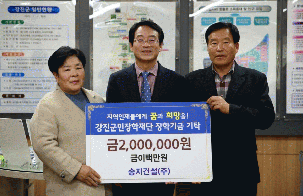 [¹Ìµð¾îÀü³² Á¦°¥´ëÁ¾ ±âÀÚ] Áö³ 5ÀÏ ¼ÛÁö°Ç¼³¢ß¿¡¼ 2¹é¸¸¿ø, Çѱ¹ ¼®¸é¾ÈÀüÇùȸ¿¡¼ 3¹é¸¸¿ø, °Áø±º°ÔÀÌÆ®º¼Çùȸ¿¡¼ 3¹é¸¸¿øÀ» °Áø±º¹ÎÀåÇÐÀç´Ü¿¡ ±âŹÇß´Ù. ¼ÛÁö°Ç¼³¢ßÀº °ÁøÀ¾ º¸Àº·Î¿¡ À§Ä¡ÇÑ Åä¸ñ°Ç¼³¾÷ü´Ù. ¹ÚÁ¦Çö ´ëÇ¥´Â¡¦