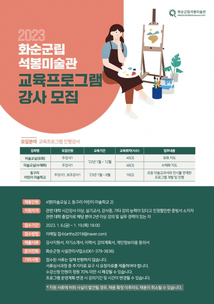 [¹Ìµð¾îÀü³² Á¦°¥´ëÁ¾ ±âÀÚ] ȼø±ºÀº ȼøÀ¾ µ¿±¸¸®¿¡ À§Ä¡ÇÑ È¼ø±º¸³¼®ºÀ¹Ì¼ú°ü¿¡¼ 2023³â ¹Ì¼ú±³À° ÇÁ·Î±×·¥ÀÎ ¡®¹Ì¼ú±³½Ç¡¯, ¡®µ¿±¸¸® ¾î¸°ÀÌ ¹Ì¼úÇб³¡¯¸¦ À̲ø¾î ³ª°¥ Âü½ÅÇÏ°í ½Ç·Â ÀÖ´Â Àü¹® °»ç¸¦ 2023³â 1¿ù 6ÀϺÎÅÍ 1¿ù 19¡¦