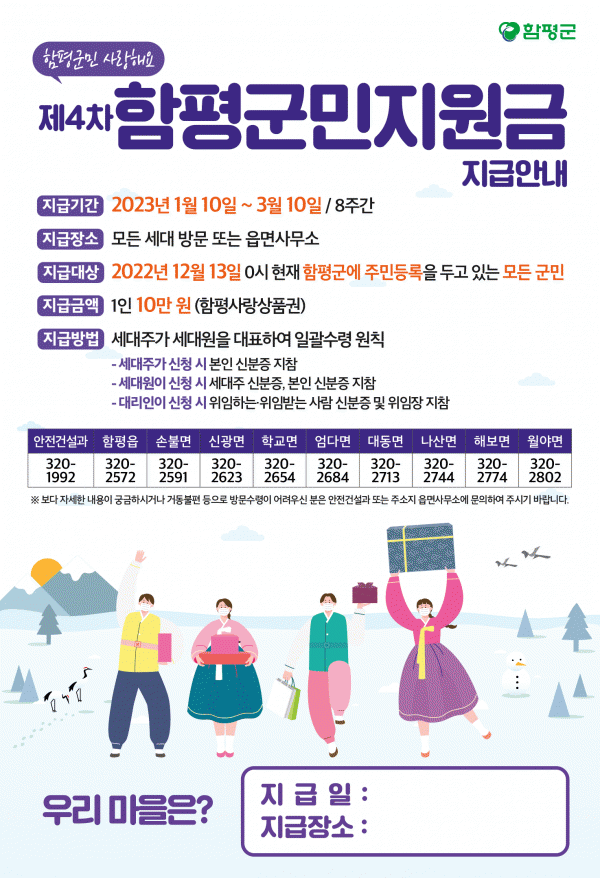 [¹Ìµð¾îÀü³² Á¦°¥´ëÁ¾ ±âÀÚ] Àü³² ÇÔÆò±ºÀÌ ±º¹Î »ýȰ¾ÈÁ¤°ú Áö¿ª°æÁ¦ Ȱ¼ºÈ¸¦ À§ÇØ ¡®Á¦4Â÷ ±º¹ÎÀç³Áö¿ø±Ý¡¯À» Áö±ÞÇÑ´Ù. ÇÔÆò±ºÀº ¡°Àü ±º¹Î¿¡°Ô 1Àδç 10¸¸¿ø¾¿ 31¾ï¿ø ±Ô¸ðÀÇ Á¦4Â÷ ±º¹ÎÀç³Áö¿ø±ÝÀ» ÇÔÆò»ç¶û»óǰ±ÇÀ¸·Î Áö±ÞÇÑ´Ù¡¦
