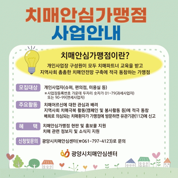 [¹Ìµð¾îÀü³² ÀÓ¼º¿Ï ±âÀÚ] ±¤¾ç½ÃÄ¡¸Å¾È½É¼¾ÅÍ´Â Ä¡¸ÅȯÀÚ¿Í °¡Á·ÀÌ ¾È½ÉÇÏ°í »ýȰÇÒ ¼ö ÀÖ´Â Ä¡¸Å Ä£ÈÀû »çȸ¹®È¸¦ Á¶¼ºÇϱâ À§ÇØ Ä¡¸Å¾È½É°¡¸ÍÁ¡À» ÀÌ´Þ 31ÀϱîÁö ¸ðÁýÇÑ´Ù. ¡®Ä¡¸Å¾È½É°¡¸ÍÁ¡¡¯Àº °³Àλç¾÷Àå ±¸¼º¿ø ¸ðµÎ Ä¡¸ÅÆÄÆ®³Ê¡¦
