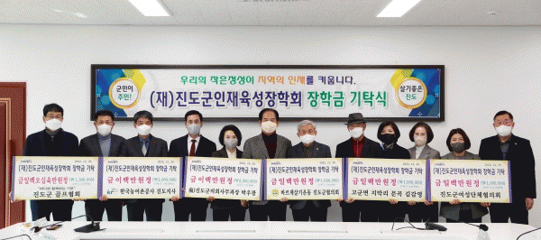 [¹Ìµð¾îÀü³² Á¦°¥´ëÁ¾ ±âÀÚ] Áøµµ±º Áö¿ª ÀÎÀç ¾ç¼ºÀ» À§ÇØ Áøµµ±ºÀÎÀçÀ°¼ºÀåÇÐȸ¿¡ ±º¹Îµé°ú »çȸ´Üü µîÀÌ ÀåÇÐ±Ý 900¿©¸¸¿øÀ» ÃÖ±Ù ±âŹÇß´Ù. ÀåÇбÝÀº Àü Áøµµ±ºÀÇȸ»ç¹«°úÀå ¹Ú¿ì±¤ 200¸¸¿ø Çѱ¹³ó¾îÃ̰ø»ç ÁøµµÁö»ç 200¸¸¿ø Áøµµ±º¡¦