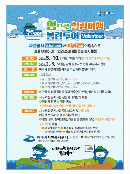 [¹Ìµð¾îÀü³² ÀüÇü¼º ±âÀÚ]¿©¼ö½Ã°¡ 2026¿©¼ö¼¼°è¼¶¹Ú¶÷ȸ¸¦ ¾ÕµÎ°í ¼¶ °ü±¤°ú ÀÚ¿øºÀ»ç¸¦ °áÇÕÇÑ ÀÌ»ö ÇÁ·Î±×·¥ÀÎ ¡®¼¶¼¶¿©¼ö º¼·±Åõ¾î(Voluntour)¡¯¸¦ ¿À´Â 5¿ùºÎÅÍ º»°Ý ¿î¿µÇÑ´Ù°í ¹àÇû´Ù. ¡®º¼·±Åõ¾î¡¯´Â ÀÚ¿øºÀ»ç(Volunteer)¿Í ¿©Çࡦ