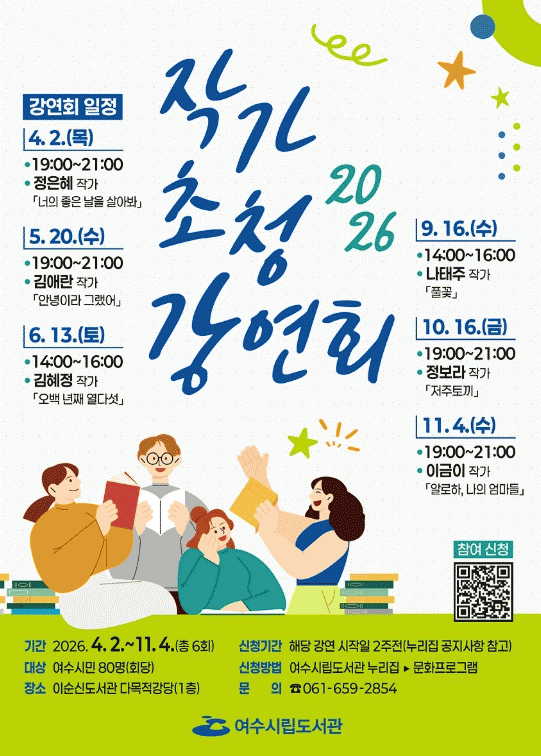 [¹Ìµð¾îÀü³² ÀüÇü¼º ±âÀÚ]¿©¼ö½Ã°¡ ¿À´Â 4¿ùºÎÅÍ ½Ã¹Î°ú ÀÛ°¡°¡ Á÷Á¢ ¸¸³ª´Â ¡®½Ã¸³µµ¼°ü ÀÛ°¡ ÃÊû °¿¬È¸¡¯¸¦ °³ÃÖÇÑ´Ù. À̹ø °¿¬È¸´Â û¼Ò³âºÎÅÍ ³ë³âÃþ±îÁö Àü ¿¬·É´ë°¡ Âü¿©ÇÒ ¼ö ÀÖµµ·Ï ´Ù¾çÇÑ ºÐ¾ßÀÇ ÀÛ°¡¸¦ ÃÊûÇßÀ¸¸ç ÆòÀÏ ¿À¡¦