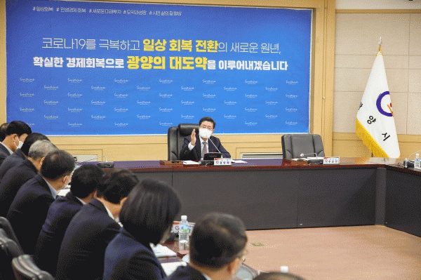 [¹Ìµð¾îÀü³² ÀÓ¼º¿Ï ±âÀÚ] ±¤¾ç½Ã´Â Áö³ 29ÀÏ ½Ãû »óȲ½Ç¿¡¼ Á¤ÀÎÈ ±¤¾ç½ÃÀå ÁÖÀç·Î ±¹¡¤¼ÒÀå°ú 12°³ À¾¡¤¸é¡¤µ¿ÀåÀÌ Âü¼®ÇÑ °¡¿îµ¥ ½ÃÁ¤ ÁÖ¿ä Çö¾ÈÀ» °øÀ¯ÇÏ°í ¼ÒÅëÀ» °ÈÇÏ´Â ½Ã°£À» °¡Á³´Ù. À̳¯ ȸÀÇ´Â ½Ç¡¤°ú¡¤¼ÒÀåÀÌ ½ÃÁ¤ ÁÖ¡¦