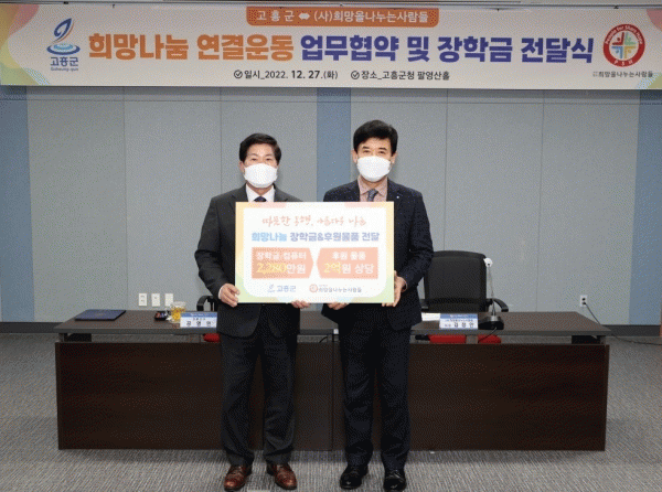 [¹Ìµð¾îÀü³² Á¦°¥´ëÁ¾ ±âÀÚ] °íÈﱺÀº Áö³ 27ÀÏ ±ºÃ» ÆÈ¿µ»êȦ¿¡¼ Èñ¸ÁÀ»³ª´©´Â»ç¶÷µé°ú ¡®Èñ¸Á³ª´® ¿¬°á¿îµ¿ ¾÷¹«Çù¾à¡¯À» ü°áÇß´Ù°í ¹àÇû´Ù. ÀÌ Çù¾à¿¡ µû¶ó »ç´Ü¹ýÀÎÀº °íÈﱺ¿¡ 2³â°£ ÃÑ 2¾ï 2,280¸¸¿ø »ó´çÀÇ ÀåÇбݰú ¹°Ç°À» Áö¡¦