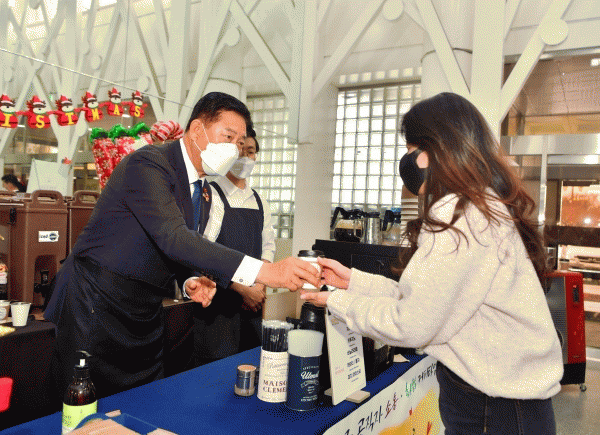 [¹Ìµð¾îÀü³² ±è±âö ±âÀÚ] À强±ºÀÌ Å©¸®½º¸¶½º¸¦ ¾ÕµÎ°í ±ºÃ» 1Ãþ ·Îºñ¿¡¼ Ä¿ÇÇ Å¸ÀÓ À̺¥Æ®¸¦ ¿¾ú´Ù. 23ÀϱîÁö ÀÌÆ²°£ Á¡½É½Ã°£ ÀüÈÄ·Î ÁøÇàµÇ´Â À̹ø Çà»ç´Â °øÁ÷ÀÚµéÀÇ ¼ÒÅë°ú ÈÇÕÀ» À§ÇØ ±ºÀÌ ÀÚüÀûÀ¸·Î ¸¶·ÃÇß´Ù. ¡®Ä¿ÇÇ ÇÑ¡¦
