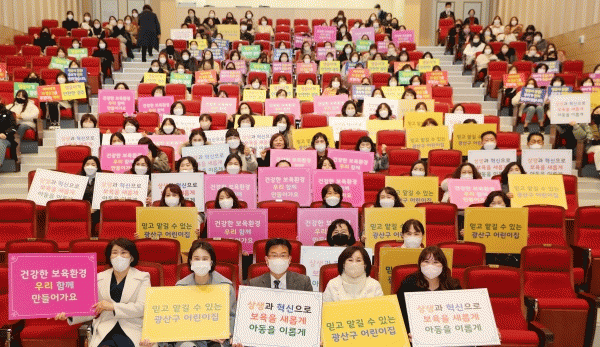 [¹Ìµð¾îÀü³² ±èÁ¤¿ì ±âÀÚ] ±¤ÁÖ ±¤»ê±¸°¡ 15ÀÏ ¼ö¿Ï¹®ÈüÀ°¼¾ÅÍ¿¡¼ ±¤»ê±¸ ¼ÒÀç ¾î¸°ÀÌÁý º¸À°±³Á÷¿øÀ» ´ë»óÀ¸·Î ¿ª·®°È ±³À°À» ½Ç½ÃÇß´Ù. À̹ø ±³À°Àº °ÈµÇ°í ÀÖ´Â ¾î¸°ÀÌÁý ȸ°è±ÔÄ¢°ú ³ëµ¿¹ýÀ» ÀÌÇØÇØ ¾î¸°ÀÌÁý ÀçÁ¤ ¿î¿µÀÇ ¾È¡¦