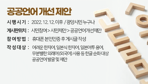 [¹Ìµð¾îÀü³² ÀÓ¼º¿Ï ±âÀÚ] ±¤¾ç½Ã°¡ ½¬¿î ¿ì¸®¸» ¾²±â ¹®È¸¦ Á¶¼ºÇÏ°í ½Ã¹ÎÀÇ ¾Ë±Ç¸® ÁõÁøÀ» À§ÇØ ´Ù¾çÇÑ °ø°ø¾ð¾î °³¼± ½ÃÃ¥À» ÃßÁøÇÑ´Ù. ¡®°ø°ø¾ð¾î¡¯¶õ °ø°ø±â°ü¿¡¼ ÀÏ¹Ý ½Ã¹ÎÀ» ´ë»óÀ¸·Î °ø°øÀÇ ¸ñÀûÀ» À§ÇØ »ç¿ëÇÏ´Â ¾ð¾î·Î ¹Î¿ø¡¦