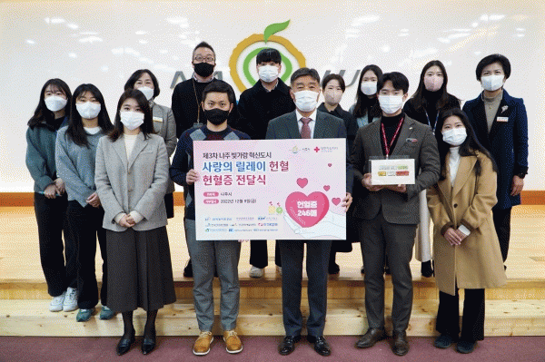 [¹Ìµð¾îÀü³² ¹Úº¹»ê ±âÀÚ] ³ªÁÖ Çõ½Åµµ½Ã ÀÌÀü°ø°ø±â°ü ÀÓÁ÷¿øµéÀÌ À۳⿡ À̾î Ç÷¾× ¼ö±Þ³ ÇØ¼Ò¸¦ À§ÇÑ »ý¸í ³ª´®¿¡ µ¿ÂüÇß´Ù. Àü¶ó³²µµ ³ªÁֽô ´ëÇÑÀû½ÊÀÚ»ç ±¤ÁÖÀü³²Ç÷¾×¿ø ÁÖ°ü ¡®ºû°¡¶÷ Çõ½Åµµ½Ã »ç¶ûÀÇ ¸±·¹ÀÌ ÇåÇ÷ Ä·ÆäÀΡ¯¿¡¡¦