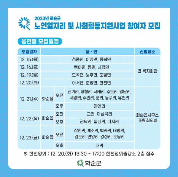 [¹Ìµð¾îÀü³² Á¦°¥´ëÁ¾ ±âÀÚ] ȼø±ºÀÌ ¿À´Â 15ÀϺÎÅÍ 23ÀϱîÁö 2023³â ³ëÀÎÀÏÀÚ¸®¡¤»çȸȰµ¿Áö¿ø»ç¾÷ Âü¿©ÀÚ 4443¸íÀ» ¸ðÁýÇÑ´Ù. ȼø±ºÀº Áö¿ª ¾î¸£½ÅµéÀÇ È°±âÂ÷°í °Ç°ÇÑ ³ëÈÄ»ýȰ ¿µÀ§¸¦ À§ÇØ »ç¾÷ºñ 158¾ï¿øÀ» ÅõÀÔÇØ 4°³ ºÐ¾ß, 1¡¦