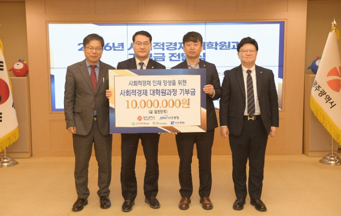 [¹Ìµð¾îÀü³² Á¦°¥´ëÁ¾ ±âÀÚ]±¤ÁÖÁö¿ª »çȸÀû±â¾÷ÀÎ ¢ß´Ù¿ìȯ°æÀÌ ±¤Áֽð¡ ÃßÁø ÁßÀÎ ¡®»çȸÀû°æÁ¦ ´ëÇпø°úÁ¤ Áö¿ø»ç¾÷¡¯À» ÈÄ¿øÇÏ´Â ±âºÎ±ÝÀ» Àü´ÞÇß´Ù. ±¤ÁÖ±¤¿ª½Ã´Â 27ÀÏ ½Ãû ºñÁî´Ï½º·ë¿¡¼ ¡®»çȸÀû°æÁ¦ ´ëÇпø°úÁ¤ Áö¿ø»ç¾÷ ±âºÎ¡¦
