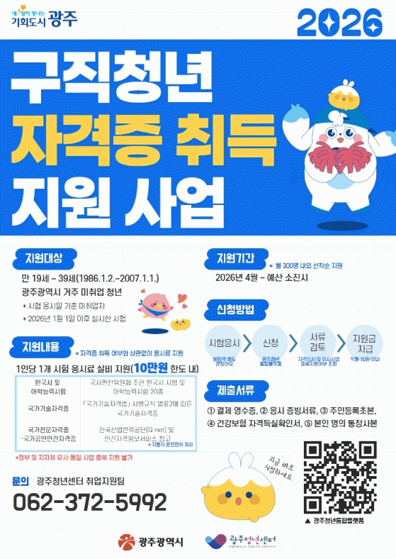 [¹Ìµð¾îÀü³² Á¦°¥´ëÁ¾ ±âÀÚ]±¤ÁÖ±¤¿ª½Ã´Â Áö¿ª û³âµéÀÌ Ãë¾÷ ÁغñÀÇ ºÎ´ãÀ» ´ú°í °Ç°ÇÑ ¸¶À½À¸·Î ¹Ì·¡¸¦ ¼³°èÇÒ ¼ö ÀÖµµ·Ï ¿À´Â 4¿ù1ÀϺÎÅÍ ¡®±¸Á÷û³â ÀÚ°ÝÁõ ÃëµæÁö¿ø »ç¾÷¡¯°ú ¡®¸¶À½°Ç°»ó´ã¼Ò¡¯ ¿î¿µÀ» ½ÃÀÛÇÑ´Ù. ÀÌ »ç¾÷Àº ±¤ÁÖ¡¦