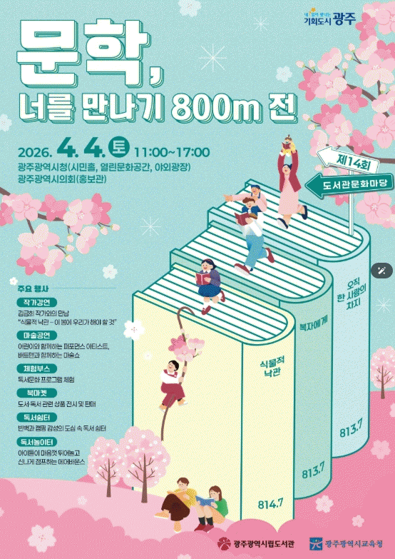 [¹Ìµð¾îÀü³² Á¦°¥´ëÁ¾ ±âÀÚ]±¤ÁÖ±¤¿ª½Ã¿Í ±¤ÁÖ±¤¿ª½Ã±³À°Ã»Àº ¿À´Â 4¿ù4ÀÏ ½Ãû¿¡¼ ¿Â °¡Á·ÀÌ ÇÔ²²ÇÏ´Â µ¶¼ÃàÁ¦ÀÎ ¡®Á¦14ȸ µµ¼°ü ¹®È¸¶´ç¡¯À» °øµ¿ °³ÃÖÇÑ´Ù. À̹ø Çà»ç´Â ÇѰ ÀÛ°¡ÀÇ ³ëº§¹®Çлó ¼ö»óÀÇ ¿±â¸¦ À̾±â À§ÇØ µµ¼¡¦