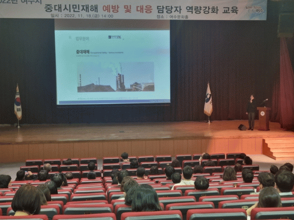 [¹Ìµð¾îÀü³² ÀüÇü¼º ±âÀÚ] ¿©¼ö½Ã°¡ Áö³ 18ÀÏ ¿©¼ö¹®ÈȦ¿¡¼ ¡®2022³â Áß´ë½Ã¹ÎÀçÇØ ¿¹¹æ ¹× ´ëÀÀ¡¯ ´ã´çÀÚ ¿ª·®°È ±³À°À» ½Ç½ÃÇß´Ù. Áß´ë½Ã¹ÎÀçÇØ ºÐ¾ß ¹ý·üÀü¹®°¡ ¹ÚÁö¿¬ º¯È£»ç¸¦ ÃÊûÇÑ À̹ø °¿¬¿¡´Â ´ë»ó½Ã¼³ ´ã´çÀÚ, À§Å¹½Ã¼³¡¦