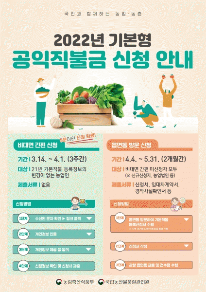 [¹Ìµð¾îÀü³² Á¦°¥´ëÁ¾ ±âÀÚ] Àü¶ó³²µµ´Â 2022³â ±âº»Çü °øÀÍÁ÷ºÒ±Ý ±Ô¸ð¸¦ 4õ388¾ï¿øÀ¸·Î È®Á¤, Áö±ÞÀ» ½ÃÀÛÇß´Ù°í ¹àÇû´Ù. ±âº»Çü °øÀÍÁ÷ºÒÁ¦´Â ³ó¾÷Ȱµ¿À» ÅëÇØ ȯ°æº¸Àü, ³óÃÌÀ¯Áö, ½Äǰ¾ÈÀü µî ³ó¾÷¡¤³óÃÌÀÇ °øÀͱâ´É ÁõÁø°ú ³ó¾÷ÀΡ¦