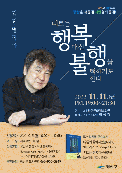 [¹Ìµð¾îÀü³² ±èÁ¤¿ì ±âÀÚ] ±¤ÁÖ ±¤»ê±¸°¡ 11ÀÏ ±¤»ê¹®È¿¹¼úȸ°ü¿¡¼ ¡®¹«±ÃȲÉÀÌ ÇǾú½À´Ï´Ù¡¯ÀÇ ±èÁø¸í ÀÛ°¡¸¦ ÃʺùÇØ Áö¿ªÁÖ¹ÎÀ» ´ë»óÀ¸·Î Àι®ÇРƯ°À» °³ÃÖÇÑ´Ù. À̹ø Ư°Àº ±èÁø¸í ÀÛ°¡ÀÇ Ã¹ ¿¡¼¼ÀÌ ÀÛǰ ¡®¶§·Î´Â Çູ´ë½Å ºÒ¡¦