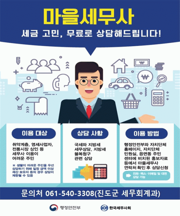 [¹Ìµð¾îÀü³² Á¦°¥´ëÁ¾ ±âÀÚ] Áøµµ±ºÀÌ ¡®¸¶À»¼¼¹«»ç¡¯¸¦ ÅëÇØ ¼¼¹«»ó´ã ¼ºñ½º¸¦ Á¦°øÇϰí ÀÖ´Ù. ¸¶À»¼¼¹«»ç Á¦µµ´Â ±º¹ÎµéÀÇ »ýȰ ¼Ó ¼¼±Ý¿¡ ´ëÇÑ °í¹Î ÇØ°áÀ» µ½°í ¿µ¼¼»ç¾÷ÀÚ, ³ó¾îÃÌ ÁֹΠµî ¼¼¹«»ç ÀÌ¿ëÀÌ ¾î·Á¿î Áֹο¡°Ô ¼¼¹«»çÀÇ¡¦