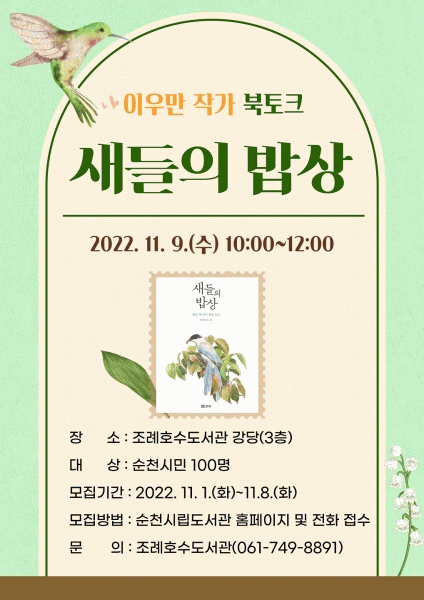 [¹Ìµð¾îÀü³² ÀÓ¼º¿Ï ±âÀÚ] ¼øÃµ½Ã¸³Á¶·ÊÈ£¼öµµ¼°üÀº ¿À´Â 9ÀÏ ¿ÀÀü 10½Ã Á¶·ÊÈ£¼öµµ¼°ü °´ç¿¡¼ ¡®»õµéÀÇ ¹ä»ó¡¯ÀÇ ÀúÀÚ À̿츸 ÀÛ°¡¸¦ ÃÊÃ»ÇØ ºÏÅäÅ©¸¦ ¿¬´Ù. À̿츸 ÀÛ°¡´Â µµ½É ¼Ó µÞ»ê¿¡¼ ¸¸³ »õµéÀ» °üÂûÇÏ°í ±â·ÏÇØ ¡®»õµéÀÇ¡¦