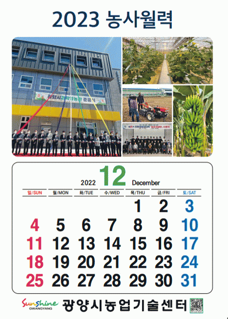 [¹Ìµð¾îÀü³² ÀÓ¼º¿Ï ±âÀÚ] ±¤¾ç½Ã´Â ³ó¾÷ÀÎÀÇ Àû±â ¿µ³ó ÃßÁøÀ» À§ÇØ 2023³âµµ ³ó»ç¿ù·Â 2,900ºÎ¸¦ Á¦ÀÛÇØ 11¿ù 1ÀϺÎÅÍ À¾¸éµ¿ ³ó¾÷Àλó´ã¼Ò¿¡¼ ¹èºÎÇϸç ÀϺδ ³ó¾÷ÀÎ ±³À° ½Ã ¹èºÎÇÑ´Ù. ³ó»ç¿ù·Â¿¡´Â ¿ùº°·Î ½Ä·®ÀÛ¹°, ¿ø¿¹ÀÛ¹°, Ãࡦ