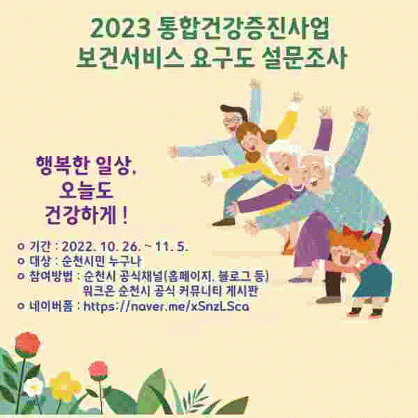 [¹Ìµð¾îÀü³² ÀÓ¼º¿Ï ±âÀÚ] ¼øÃµ½Ã´Â ´ÙÀ½ ´Þ 5ÀϱîÁö Áö¿ªÁֹΠ1õ ¸íÀ» ´ë»óÀ¸·Î ¡®ÅëÇհǰÁõÁø»ç¾÷ º¸°Ç¼ºñ½º ¿ä±¸µµ Á¶»ç¡¯¸¦ ½Ç½ÃÇÑ´Ù. À̹ø Á¶»ç´Â Áö¿ª Ư¼ºÀ» ¹Ý¿µÇÑ °Ç°ÇüÆò¼º°ú ½Ã¹ÎÀÇ °Ç°¼öÁØ Çâ»óÀ» À§ÇÑ ³»³âµµ ÅëÇհǰ¡¦