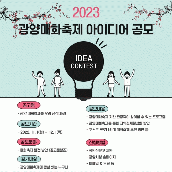 [¹Ìµð¾îÀü³² ÀÓ¼º¿Ï ±âÀÚ] ±¤¾ç½Ã°¡ 4³â ¸¸¿¡ °³ÃÖµÉ 2023 ±¤¾ç¸ÅÈÃàÁ¦¸¦ ¾ÕµÎ°í ´ëÇѹα¹ ´ëÇ¥ÃàÁ¦·Î µµ¾àÇϱâ À§ÇÑ ¾ÆÀ̵ð¾î °ø¸ð¿¡ ³ª¼±´Ù. ½Ã´Â ¿À´Â 11¿ù 1ÀϺÎÅÍ ÇÑ ´Þ°£ Àü ±¹¹ÎÀ» ´ë»óÀ¸·Î ±¤¾ç¸ÅÈÃàÁ¦ÀÇ ¸Å·Â°ú °æÀï·ÂÀ» ³ô¡¦