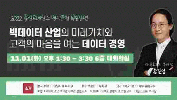 [¹Ìµð¾îÀü³² ±èÁ¤¿ì ±âÀÚ] ±¤ÁÖ µ¿±¸´Â 4Â÷ »ê¾÷Çõ¸íÀÇ ÇÙ½ÉÀÎ ºòµ¥ÀÌÅ͸¦ Ȱ¿ëÇÑ °æ¿µ ¸¶Àεå Çü¼ºÀ» À§ÇÑ ¡®ÃæÀ帣³×»ó½º ¸í»ç ÃÊû Ưº°°¿¬¡¯À» °³ÃÖÇÑ´Ù°í ¹àÇû´Ù. ¿À´Â 11¿ù 1ÀÏ ¿ÀÈÄ 1½Ã 30ºÐ ±¸Ã» 6Ãþ ´ëȸÀǽǿ¡¼ ¿¸®´Â À̹ø¡¦