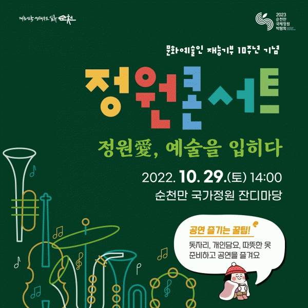 [¹Ìµð¾îÀü³² ÀÓ¼º¿Ï ±âÀÚ] ¼øÃµ½Ã´Â ¿À´Â 29ÀÏ ¿ÀÈÄ 2½Ã ¼øÃµ¸¸±¹°¡Á¤¿ø µ¿¹® Àܵ𸶴翡¼ ¡®Á¤¿øäñ, ¿¹¼úÀ» ÀÔÈ÷´Ù¡¯¶ó´Â ÁÖÁ¦·Î Á¤¿øÄܼƮ¸¦ ¿¬´Ù°í ¹àÇû´Ù. À̹ø Á¤¿øÄܼƮ´Â ±×µ¿¾È ¼øÃµ¸¸±¹°¡Á¤¿øÀ» ã´Â ¹æ¹®°´µéÀ» À§ÇØ Áö¿ª¡¦