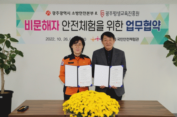 [¹Ìµð¾îÀü³² Á¦°¥´ëÁ¾ ±âÀÚ] ±¤ÁÖ¼Ò¹æ¾ÈÀüº»ºÎ¿Í ±¤ÁÖÆò»ý±³À°ÁøÈï¿øÀº 26ÀÏ ºû°íÀ»±¹¹Î¾ÈÀüüÇè°ü¿¡¼ ¡®ºñ¹®ÇØÀÚ ¾ÈÀüüÇèÀ» À§ÇÑ ¾÷¹«Çù¾à¡¯À» ü°áÇß´Ù. À̹ø Çù¾àÀº ºñ¹®ÇØÀÚÀÇ ¾ÈÀüÀÇ½Ä °È¿Í ¾ÈÀü¹®È È®»êÀ» À§ÇØ ¸¶·ÃµÆ´Ù. Çù¡¦