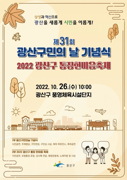 [¹Ìµð¾îÀü³² ±èÁ¤¿ì ±âÀÚ] ±¤ÁÖ ±¤»ê±¸°¡ 26ÀÏ ¿ÀÀü 10½Ã dz¿µÃ¼À°½Ã¼³´ÜÁö¿¡¼ ¹Î¼±8±â ±¸Á¤¸ñÇ¥ÀÎ ¡®»ó»ý°ú Çõ½ÅÀ¸·Î ±¤»êÀ» »õ·Ó°Ô ½Ã¹ÎÀ» ÀÌ·Ó°Ô¡¯¸¦ ½½·Î°ÇÀ¸·Î Á¦31ȸ ±¤»ê±¸¹ÎÀdz¯ ±â³ä½ÄÀ» °³ÃÖÇÑ´Ù. ±¤»ê±¸¹ÎÀÇ ³¯Àº ¸Å³â 10¿ù¡¦