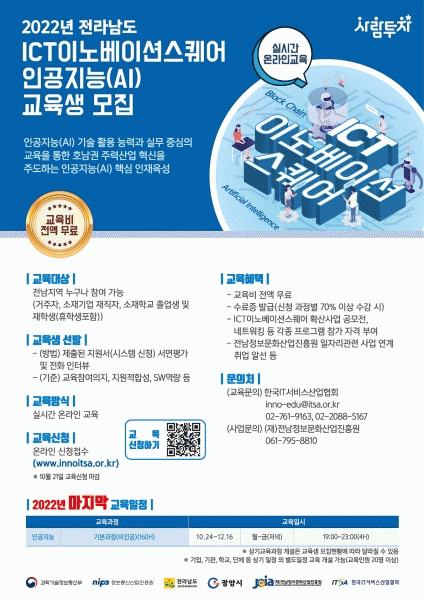 [¹Ìµð¾îÀü³² ÀÓ¼º¿Ï ±âÀÚ] ±¤¾ç½Ã´Â Àü³²ICTÀ̳뺣À̼ǽºÄù¾î¿¡¼ ÀΰøÁö´É 7±â ±³À°»ýÀ» ¸ðÁýÇÑ´Ù°í ¹àÇû´Ù. º» »ç¾÷Àº 2020³â °úÇбâ¼úÁ¤º¸Åë½ÅºÎ °ø¸ð»ç¾÷À¸·Î Áö¿ª µðÁöÅÐ Àü¹®ÀÎÀç 1,000¿©¸í ¾ç¼ºÀ» ¸ñÇ¥·Î 2023³â±îÁö ÃÑ 84¾ï¿øÀÌ¡¦