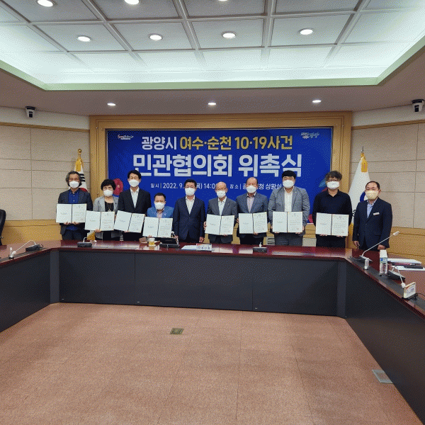 [¹Ìµð¾îÀü³² ÀÓ¼º¿Ï ±âÀÚ] ±¤¾ç½Ã´Â Áö³ 9¿ù 29ÀÏ ½Ãû »óȲ½Ç¿¡¼ ±¤¾ç½Ã ¿©¼ö¡¤¼øÃµ 10¡¤19»ç°Ç ¹Î°üÇùÀÇȸ À§Ã˽ÄÀ» °³ÃÖÇß´Ù. À̹ø¿¡ óÀ½À¸·Î ±¸¼ºµÇ´Â ±¤¾ç½Ã ¿©¼ö¡¤¼øÃµ 10¡¤19»ç°Ç ¹Î°üÇùÀÇȸ´Â Áö³ 8¿ù 18ÀÏ °ü·Ã Á¶·Ê°¡ »õ·Ó¡¦
