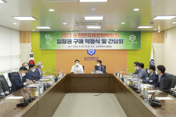 [¹Ìµð¾îÀü³² ÀÓ¼º¿Ï ±âÀÚ] ¼øÃµ½Ã¿Í ¼øÃµ´ë°¡ 26ÀÏ ¡®2023 ¼øÃµ¸¸ ±¹Á¦Á¤¿ø ¹Ú¶÷ȸ¡¯ÀÇ ¼º°ø °³ÃÖ¸¦ À§ÇØ ±¸¸Å¾àÁ¤½ÄÀ» °®°í °øµ¿ Çù·ÂÇϱâ·Î Çß´Ù. ¼øÃµ½Ã¿¡ µû¸£¸é À̳¯ ³ë°ü±Ô ¼øÃµ½ÃÀåÀÌ ¹Î¼± 8±â Ãâ¹ü ÀÌÈÄ Ã³À½ ¼øÃµ´ë¸¦ ¹æ¹®ÇØ °í¡¦