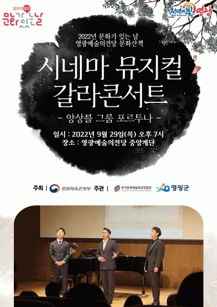 [¹Ìµð¾îÀü³² Á¦°¥´ëÁ¾ ±âÀÚ] ¿µ±¤±ºÀº ¿À´Â 29ÀÏ ¿ÀÈÄ 7½Ã¿¡ ¿µ±¤¿¹¼úÀÇÀü´ç ¾ß¿Ü°ø¿¬Àå¿¡¼ 2022³â ¹®È°¡ ÀÖ´Â ³¯ °ø¿¬»êÃ¥ ÇÁ·Î±×·¥À¸·Î ¾Ó»óºí±×·ì Æ÷¸£Åõ³ªÀÇ¡®½Ã³×¸¶ ¹ÂÁöÄà °¥¶óÄܼƮ¡¯°ø¿¬À» ¼±º¸ÀδÙ. ¹Ù¸®Åæ À±Çü, Å×³Ê ±èÁ¤¡¦