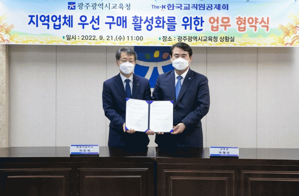[¹Ìµð¾îÀü³² Á¦°¥´ëÁ¾ ±âÀÚ] ±¤Áֽñ³À°Ã»ÀÌ 21ÀÏ ¡®Áö¿ª¾÷ü ¹°Ç° ¿ì¼± ±¸¸Å Ȱ¼ºÈ¡¯¸¦ À§ÇØ Çѱ¹±³Á÷¿ø°øÁ¦È¸¿Í ¾÷¹«Çù¾à¡¯À» ü°áÇß´Ù. 21ÀÏ ½Ã±³À°Ã»¿¡ µû¸£¸é ¾ç ±â°üÀº À̹ø ¾÷¹«Çù¾àÀ¸·Î Çб³ÀåÅÍ¿¡ Áö¿ª¾÷ü ¹°Ç° ±¸¸Å Àü¿ë ÄÚ¡¦
