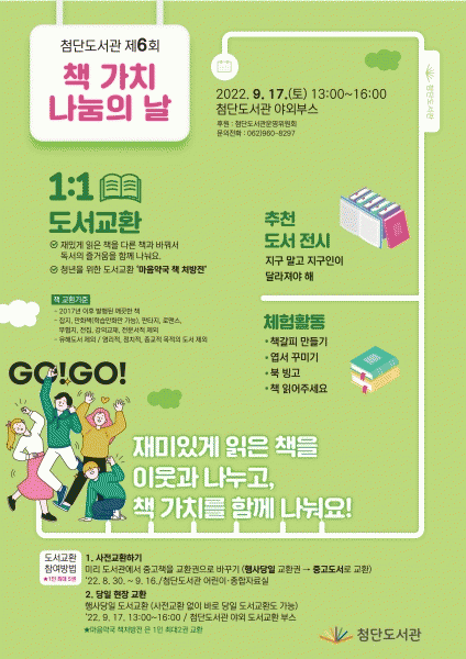 [¹Ìµð¾îÀü³² ±èÁ¤¿ì ±âÀÚ] ±¤ÁÖ ±¤»ê±¸ ÷´Üµµ¼°üÀÌ 17ÀÏ Ã·´Üµµ¼°ü ¾ß¿ÜºÎ½º¿¡¼ ¡®Á¦6ȸ Ã¥ °¡Ä¡ ³ª´®ÀÇ ³¯¡¯ Çà»ç¸¦ °³ÃÖÇÑ´Ù. ¡®Ã¥ °¡Ä¡ ³ª´®ÀÇ ³¯¡¯Àº º»ÀÎÀÌ Àç¹ÌÀÖ°Ô ÀÐÀº Ã¥À» ´Ù¸¥ Áß°íµµ¼¿Í ±³È¯ÇØ, µ¶¼ÀÇ °¡Ä¡¸¦ ÀÌ¿ô°ú ¡¦