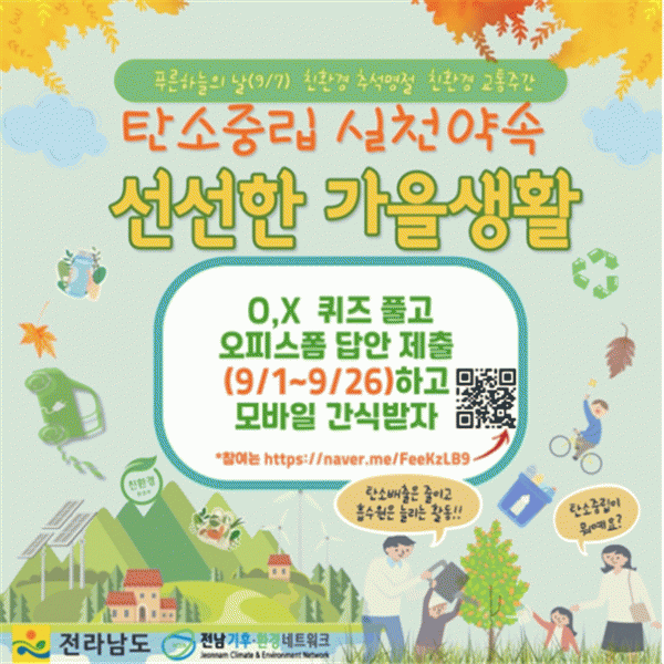 [¹Ìµð¾îÀü³² Á¦°¥´ëÁ¾ ±âÀÚ] Àü¶ó³²µµ´Â 7ÀÏ ¡®Çª¸¥ ÇÏ´ÃÀÇ ³¯¡¯À» ¸Â¾Æ ´ë±âȯ°æ°ú ±âÈĺ¯È¿¡ ´ëÇÑ ÀÎ½Ä Á¦°í¸¦ À§ÇØ 8ÀϱîÁö Ä·ÆäÀÎ µî ´Ù¾çÇÑ Çà»ç¸¦ ÃßÁøÇÑ´Ù. ¡®Çª¸¥ ÇÏ´ÃÀÇ ³¯¡¯Àº 2019³â 9¿ù ±âÈÄÇൿÁ¤»óȸÀÇ¿¡¼ ¿ì¸®³ª¶ó°¡ Á¦¡¦