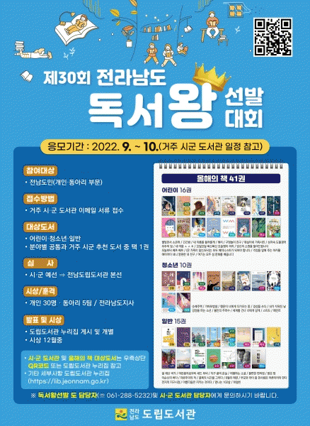 [¹Ìµð¾îÀü³² Á¦°¥´ëÁ¾ ±âÀÚ] Àü³²µµ¸³µµ¼°üÀº µ¶¼ÀÇ °èÀýÀ» ¸Â¾Æ ¹üµµ¹Î Ã¥ Àд ¹®È È®»êÀ» À§ÇØ ¡®Á¦30ȸ Àü¶ó³²µµ µ¶¼¿Õ ¼±¹ß´ëȸ¡¯¸¦ °³ÃÖÇÑ´Ù°í ¹àÇû´Ù. Ã¥À» »ç¶ûÇÏ´Â µµ¹ÎÀ» ´ë»óÀ¸·Î ÁøÇàÇÏ´Â À̹ø µ¶¼¿Õ ¼±¹ß´ëȸ´Â °³Àΰú¡¦
