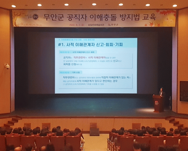 [¹Ìµð¾îÀü³² ±èÆÇ±¹ ±âÀÚ] ¹«¾È±ºÀº 2ÀÏ ½Â´Þ¹®È¿¹¼úȸ°ü¿¡¼ 800¿© °øÁ÷ÀÚ°¡ Âü¼®ÇÑ °¡¿îµ¥ °øÁ÷ÀÚ ÀÌÇØÃæµ¹¹æÁö¹ý ±³À°À» ½Ç½ÃÇß´Ù°í ¹àÇû´Ù. ÀÌÇØÃæµ¹¹æÁö¹ýÀº 9³â µ¿¾ÈÀÇ ÀÔ¹ý ³ë·Â ³¡¿¡ ÀÛ³â 5¿ù Á¦Á¤µÆ°í ±Ý³â 5¿ù 19ÀϺÎÅÍ ½ÃÇࡦ