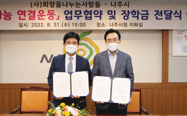 [¹Ìµð¾îÀü³² ¹Úº¹»ê ±âÀÚ] Àü³² ³ªÁֽô Áö³ ´Þ 31ÀÏ Èñ¸ÁÀ»³ª´©´Â»ç¶÷µé°ú Àú¼Òµæ °¡±¸ ¾Æµ¿¡¤Ã»¼Ò³âÀÇ ÀåÇÐ±Ý Áö¿ø µîÀ» À§ÇÑ ¡®Èñ¸Á³ª´® ¿¬°á¿îµ¿¡¯ ¾÷¹«Çù¾àÀ» ü°áÇß´Ù°í 1ÀÏ ¹àÇû´Ù. 2007³â 10¿ù ¼³¸³µÈ Èñ¸ÁÀ»³ª´©´Â»ç¶÷µéÀº ¡¦