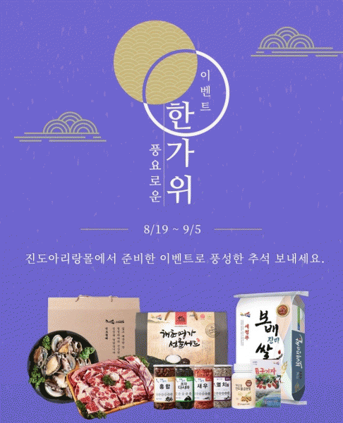 [¹Ìµð¾îÀü³² Á¦°¥´ëÁ¾ ±âÀÚ] Áøµµ±º ³ó¼öƯ»ê¹° ¿Â¶óÀÎ ¼îÇθôÀÎ ¡®Áøµµ¾Æ¸®¶û¸ô¡¯¿¡¼ ¿À´Â 9¿ù 5ÀϱîÁö ¡®Ãß¼®¸ÂÀÌ Æ¯º° ÇÒÀÎÇà»ç¡¯ µî ´Ù¾çÇÑ À̺¥Æ®¸¦ ÁøÇàÇÑ´Ù. Ãß¼® Ưº°ÀüÀº º¸¹è¼¶ Áøµµ±ºÀÇ ¿ì¼öÇÑ ³ó¼öƯ»ê¹° 40°³ ¾÷ü, 150¿©¡¦