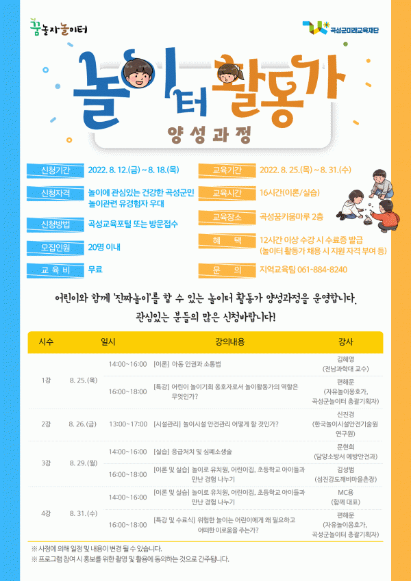 [¹Ìµð¾îÀü³² Á¦°¥´ëÁ¾ ±âÀÚ] °î¼º±º¹Ì·¡±³À°Àç´ÜÀÌ ÁÖ¹ÎÀÌ ÁÖµµÇÏ´Â ³îÀ̹®È È®»êÀ» À§ÇØ ¡®²Þ³îÀÚ ³îÀÌÅÍȰµ¿°¡ ¾ç¼º°úÁ¤¡¯ Âü¿©ÀÚ¸¦ ¸ðÁýÇÑ´Ù°í 12ÀÏ ¹àÇû´Ù. °î¼º±º¹Ì·¡±³À°Àç´Ü¿¡ µû¸£¸é ¸ðÁý´ë»óÀº ³îÀÌ¿¡ °ü½É ÀÖ´Â °î¼º±º¹ÎÀ̸顦
