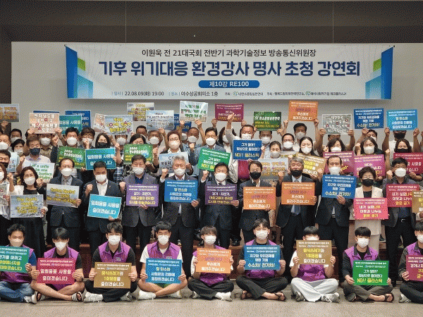 [¹Ìµð¾îÀü³² ÀüÇü¼º ±âÀÚ] »ç´Ü¹ýÀΠź¼ÒÁ߸³½Çõ¿¬´ë°¡ Áö³ 9ÀÏ ¿©¼ö»ó°øÈ¸ÀǼҿ¡¼ ¿¸° ±âÈÄÀ§±â ´ëÀÀÀ» À§ÇÑ ¡®È¯°æ¸í»ç ÃÊû °¿¬È¸¡¯¸¦ ¼ºÈ²¸®¿¡ ¸¶¹«¸®Çß´Ù. À̹ø °¿¬¿¡´Â ÀÌ¿ø¿í ±¹È¸ÀÇ¿øÀÌ °»ç·Î ³ª¼ ¡®re100À̶õ ¹«¾ùÀΰ¡¡¦