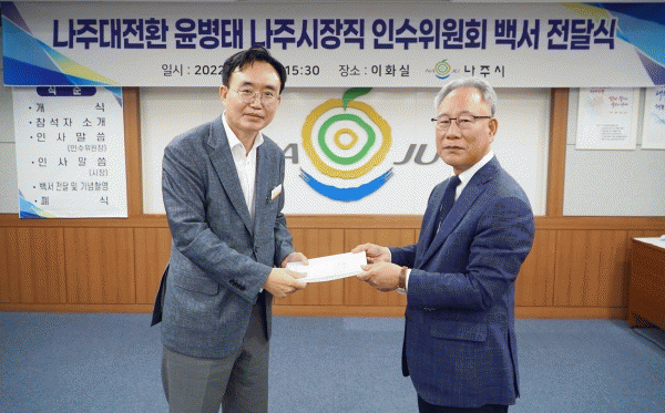 [¹Ìµð¾îÀü³² ¹Úº¹»ê ±âÀÚ] À±º´Å ³ªÁÖ½ÃÀåÀÌ 8ÀÏ ³ªÁÖ½ÃÀåÁ÷ ÀμöÀ§¿øÈ¸ Ȱµ¿ °á°ú¸¦ ´ãÀº ¹é¼¸¦ Àü´Þ¹Þ¾Ò´Ù. Àü¶ó³²µµ ³ªÁֽô À̳¯ ½Ãû»ç ÀÌȽǿ¡¼ ¡®¹Î¼± 8±â ³ªÁÖ½ÃÀåÁ÷ ÀμöÀ§¿øÈ¸ Ȱµ¿ ¹é¼ Àü´Þ½Ä¡¯À» °¡Á³´Ù°í ¹àÇû´Ù. ¡¦