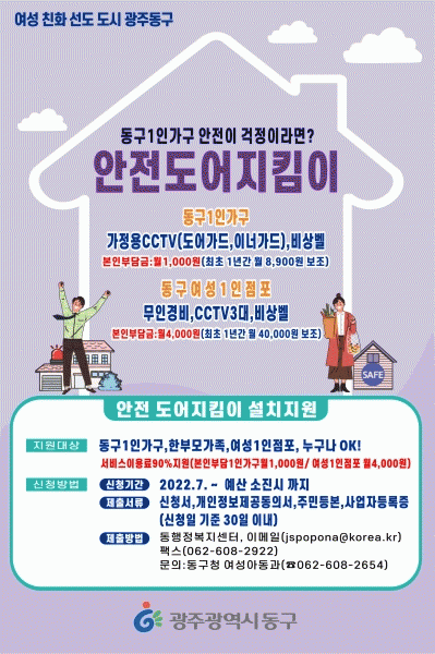 [¹Ìµð¾îÀü³² ±èÁ¤¿ì ±âÀÚ] ±¤ÁÖ µ¿±¸´Â ÃÖ±Ù ¾ÈÀü Ãë¾à°èÃþÀÎ 1ÀÎ °¡±¸¿Í ¿©¼º 1ÀÎ Á¡Æ÷ µîÀ» Ÿ±êÀ¸·Î ÇÏ´Â ÁÖ°ÅħÀÔ ¹üÁ˰¡ ±ÞÁõÇÔ¿¡ µû¶ó ¡®½º¸¶Æ® ¾ÈÀü µµ¾î ÁöÅ´ÀÌ¡¯ ÀÌ¿ë·á Áö¿ø »ç¾÷¿¡ ³ª¼±´Ù°í ¹àÇû´Ù. µ¿±¸´Â ÃÖ±Ù ¢ßSK½¯´õ½º¿Í¡¦
