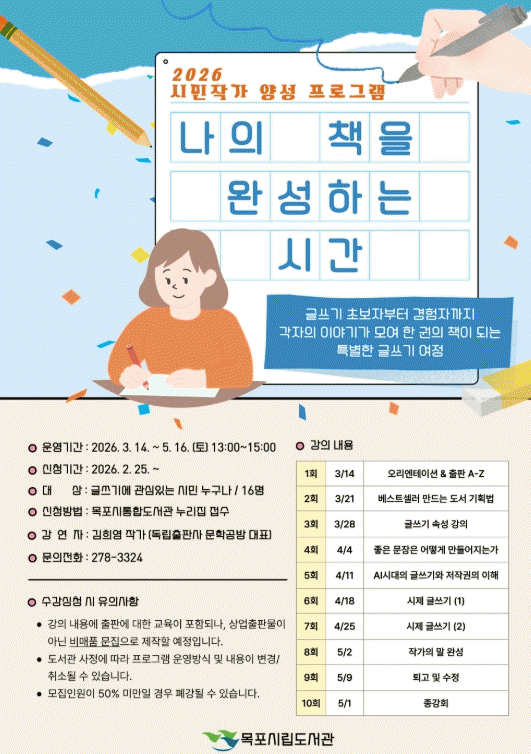 [¹Ìµð¾îÀü³² °í±Ô¼® ±âÀÚ]¸ñÆ÷½Ã¸³µµ¼°üÀº ÀΰøÁö´É(AI) ±â¼ú È®»ê°ú Á¤º¸ °úÀ× È¯°æ ¼Ó¿¡¼ ½Ã¹ÎµéÀÇ »ç°í·Â°ú Ç¥Çö·ÂÀ» ³ôÀ̱â À§ÇØ ½Ã¹ÎÀÛ°¡ ¾ç¼º °úÁ¤ ¡®³ªÀÇ Ã¥À» ¿Ï¼ºÇÏ´Â ½Ã°£¡¯À» ¿î¿µÇÑ´Ù. À̹ø °úÁ¤Àº µ¶¼¸¦ ³Ñ¾î ±Û¾²±â¿Í ¡¦