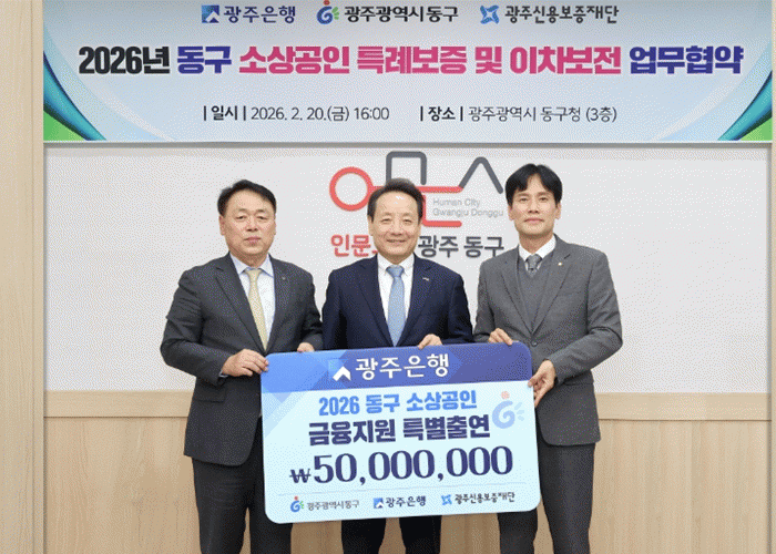 [¹Ìµð¾îÀü³² Á¦°¥´ëÁ¾ ±âÀÚ]±¤ÁÖÀºÇàÀº 20ÀÏ, ±¤ÁÖ±¤¿ª½Ã µ¿±¸Ã»¿¡¼ ÀÓÅà ±¤ÁÖ±¤¿ª½Ã µ¿±¸Ã»Àå, °ÁöÈÆ ±¤ÁÖÀºÇà ºÎÇàÀå, ¿°±Ô¼Û ±¤Áֽſ뺸ÁõÀç´Ü ÀÌ»çÀå ¹× °ü°èÀÚ°¡ Âü¼®ÇÑ °¡¿îµ¥ ¡®µ¿±¸ ¼Ò»ó°øÀΠƯ·Êº¸Áõ ¾÷¹«Çù¾à¡¯À» ü°áÇß´Ù°í¡¦